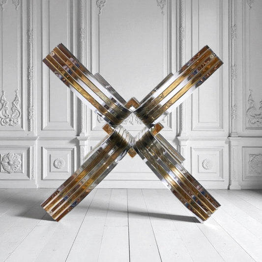 Vintage Chrome & Glass Starburst Coffee Table Belgochrom Rega Style 1970s