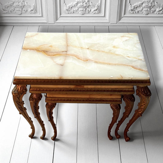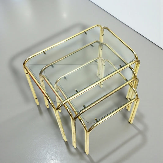 1970s Italian Mid Century Brass & Glass Nesting Tables Set of 3