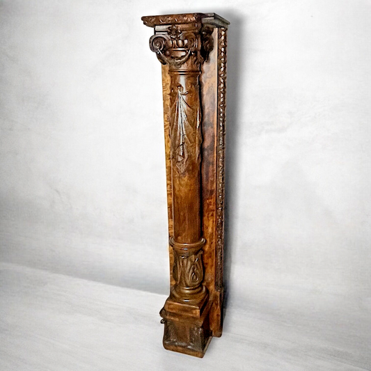 Antique 19th Century Hand-Carved Walnut Corinthian Wall Column H 4.5ft