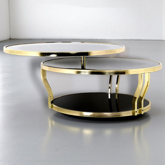 Hollywood Regency Italian Milo Baughman Style Brass Triple Shelf Coffee Table
