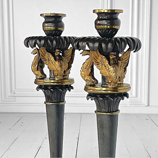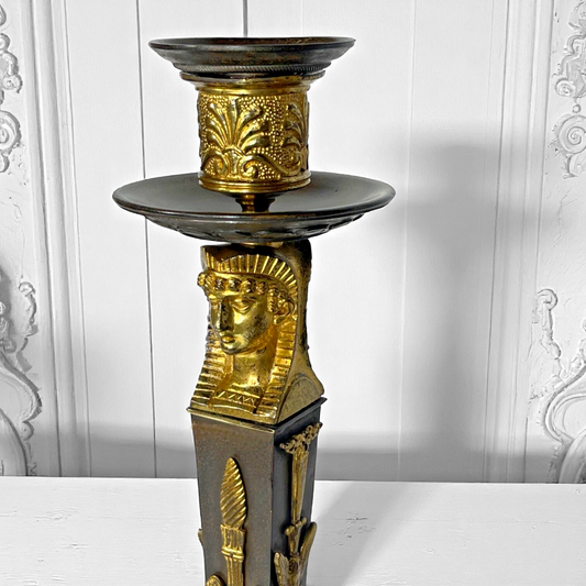 Antique Rare Russian Empire Ormolu & Patinated Bronze Candlestick ,c1810