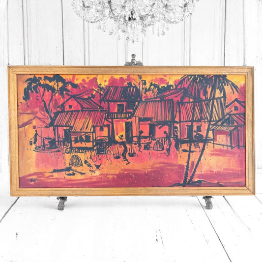 Large Harlim vintage Ink & Watercolour Canvas