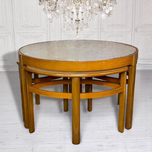 Mid Century Nest of 3 Boho Cylinder Blonde Bamboo Tables/Stools