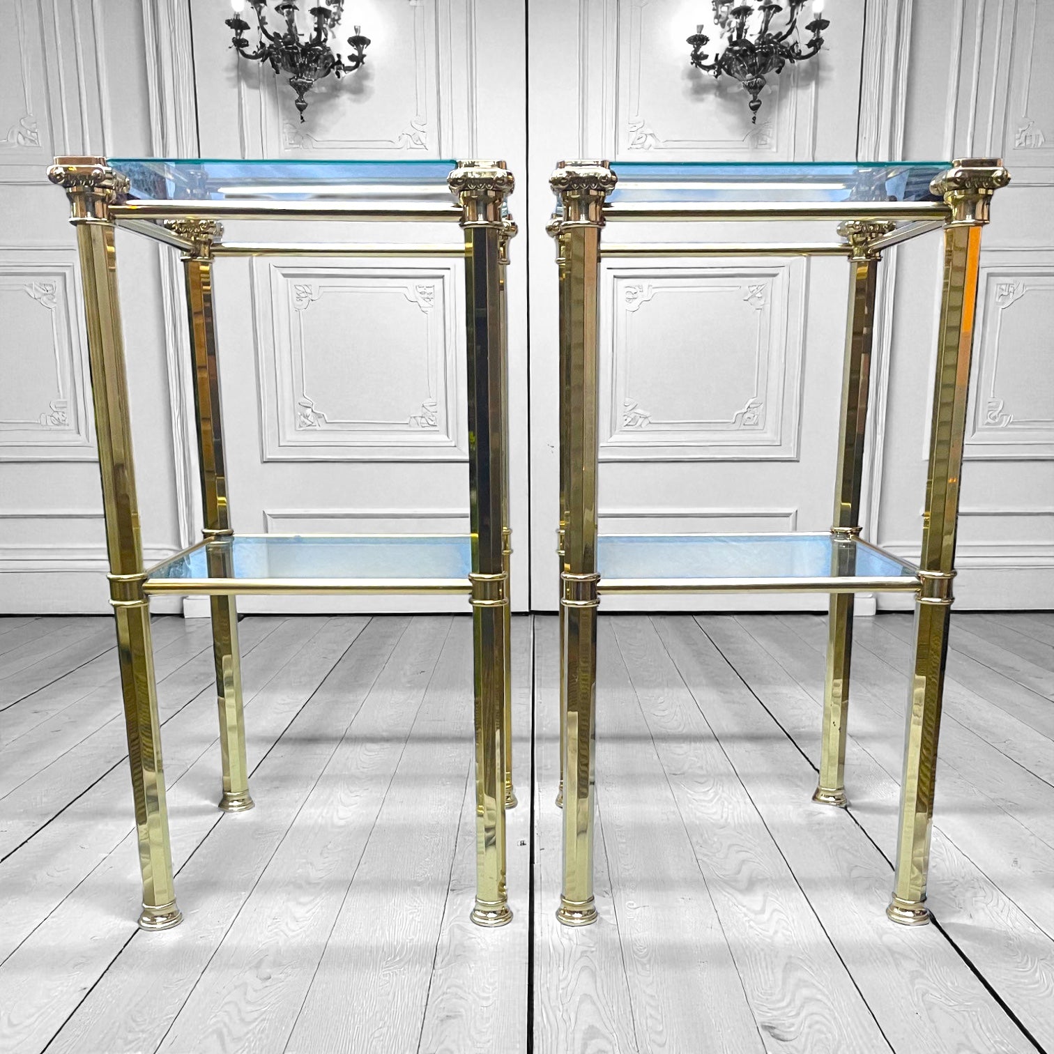1970s Pair Hollywood Regency Brass & Glass Side Tables, Romeo Rega, Maison Jansen style