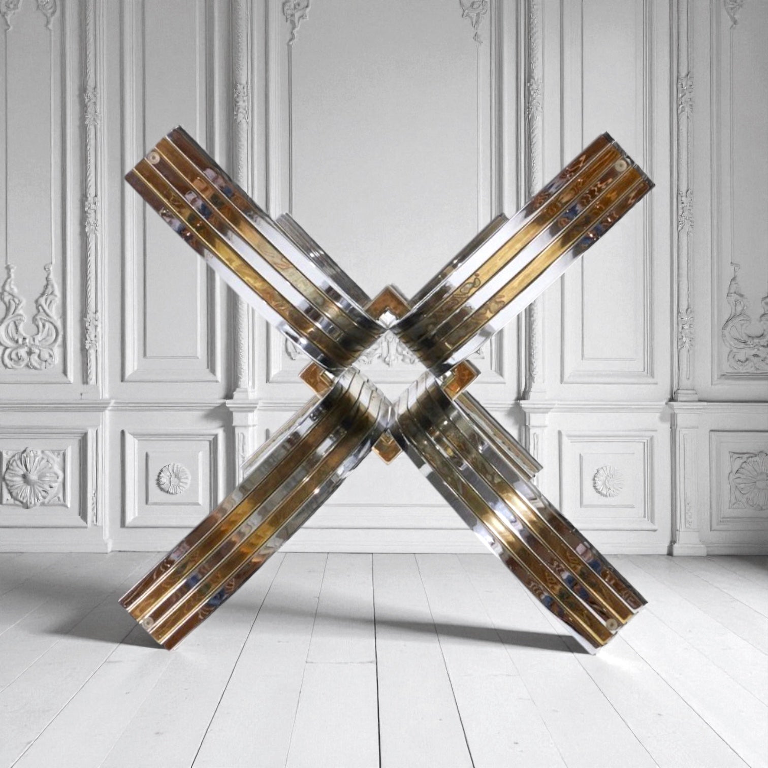 1970s Renato Zevi Banci Firenze Brass Chrome Round Dining Table, Hollywood Regency