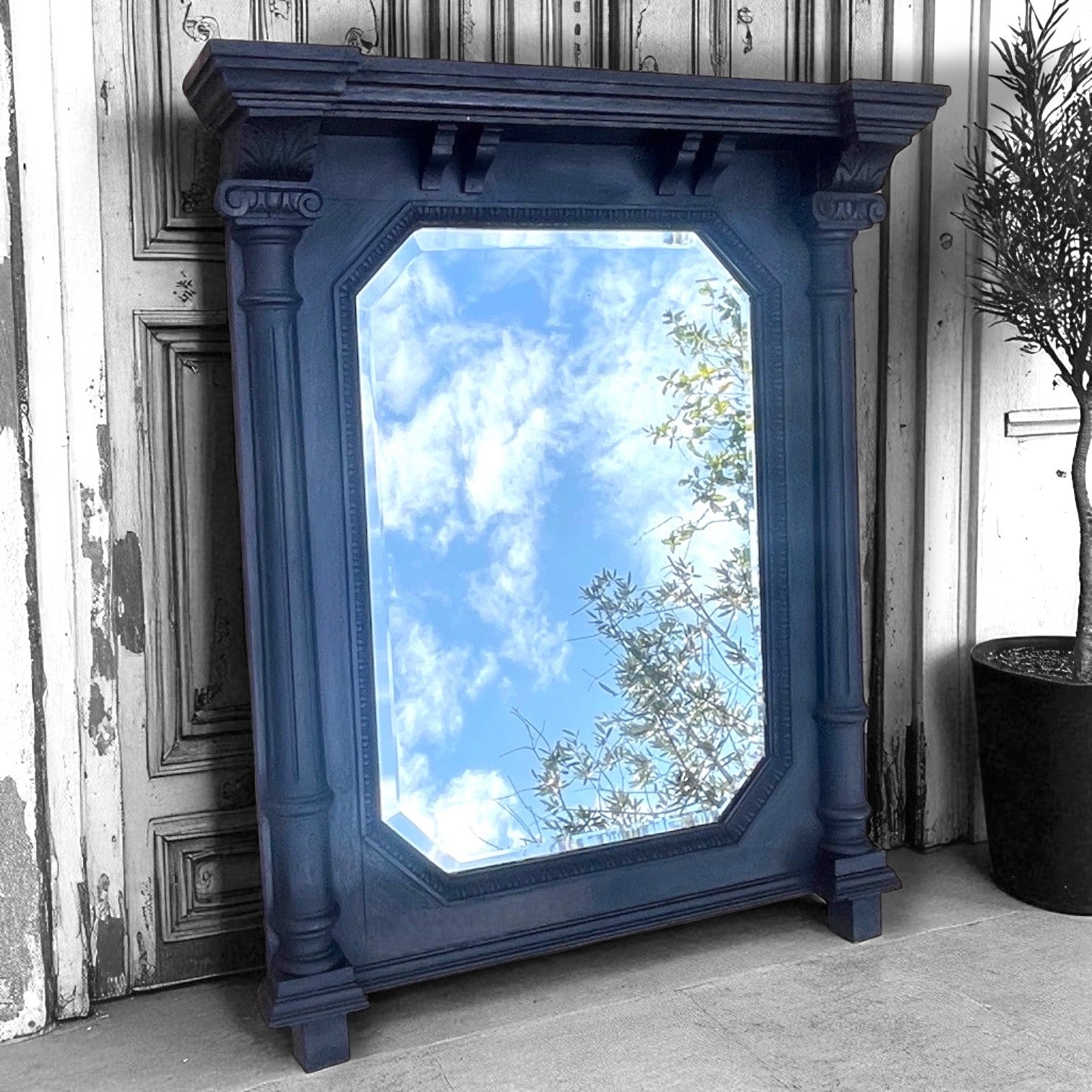 Antique Ebonized Gothic Revival Overmantel Mirror, With Original Mercury Glass,1860–1880.