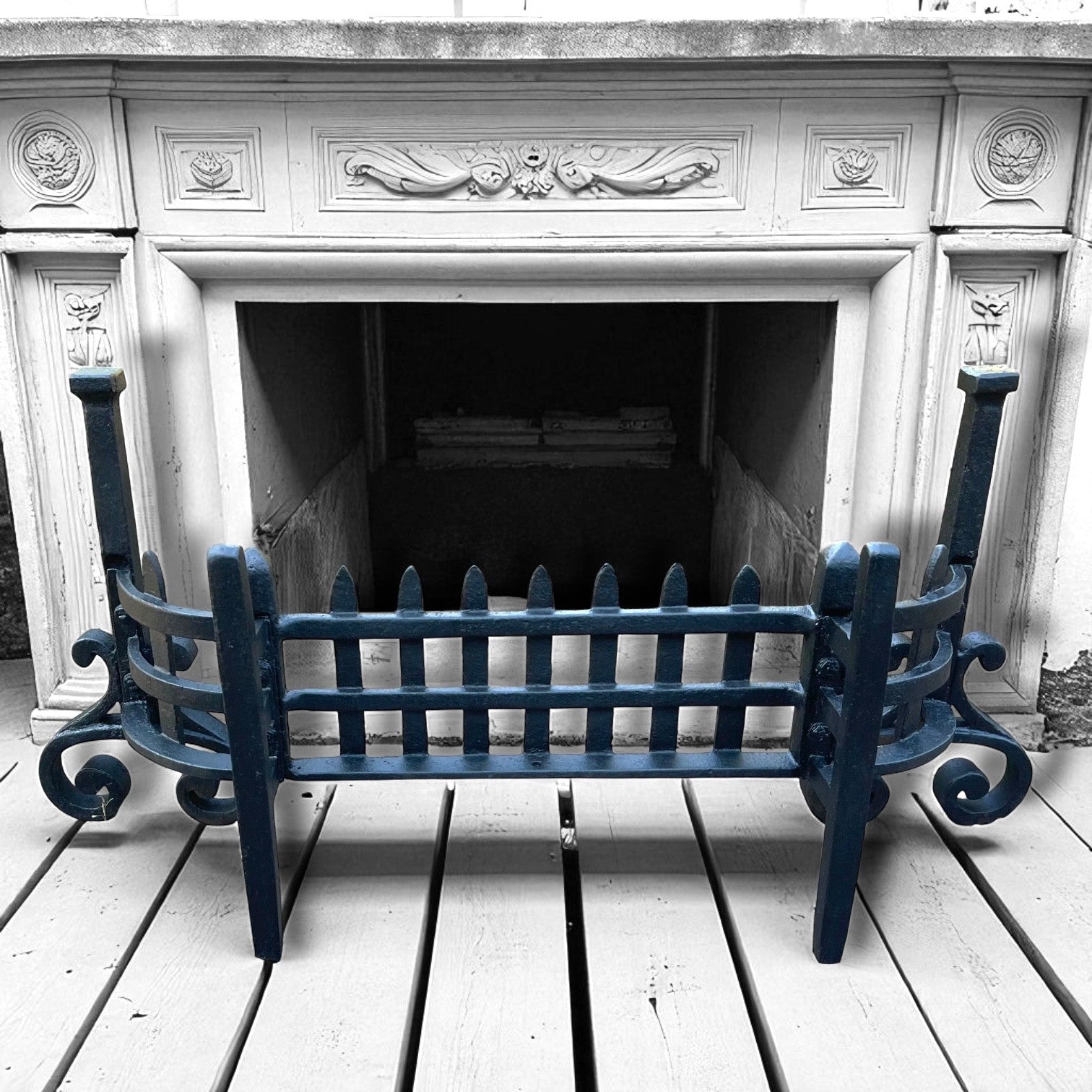 This large antique Victorian cast iron fireplace fender, measuring 36 inches long, dates from around 1890–1910. Made of heavy cast iron, it features a distinctive picket-fence design with Gothic pointed uprights and elegant scrollwork legs. Designed to protect floors and hearths from sparks and ash, it enhances period fireplaces with authentic Victorian charm. Finished in black stove enamel, it is in excellent condition and ready to display or use in restoration projects.