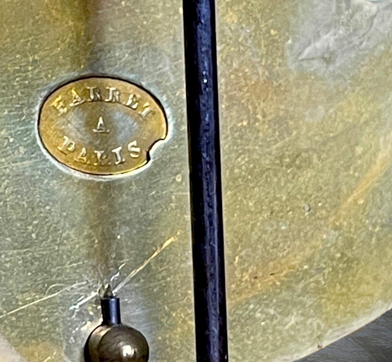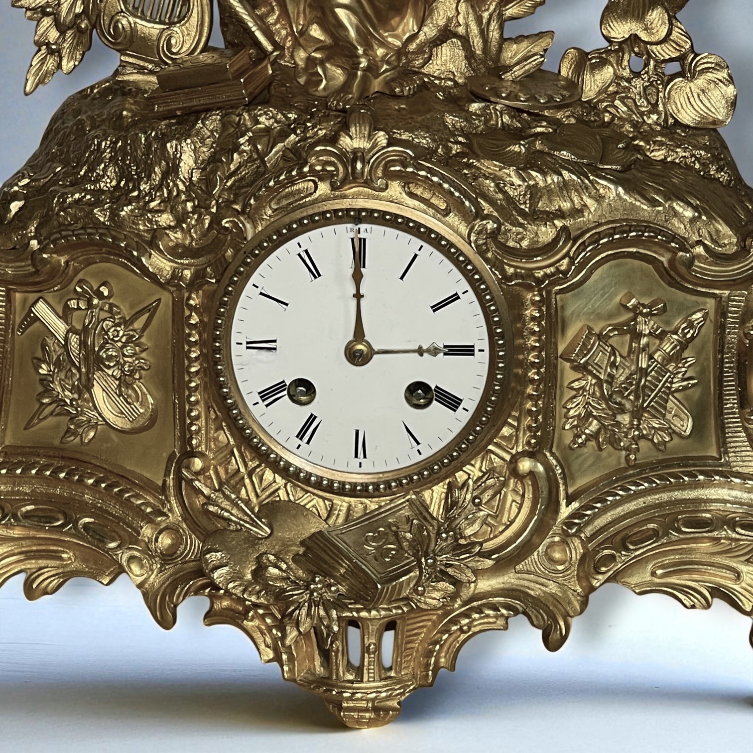 Original 19th century French ormolu mantel clock attributed to renowned bronzier Henri Picard. Signed "Farret à Paris" and featuring Athena the allegorical female figure of art classical instruments, and floral motifs, characteristic of Napoleon III / Second Empire style. Excellent condition, with matching serial number 1138 on the movement and pendulum. Stamped "H. PICARD" and with an additional maker's mark for authenticity.
